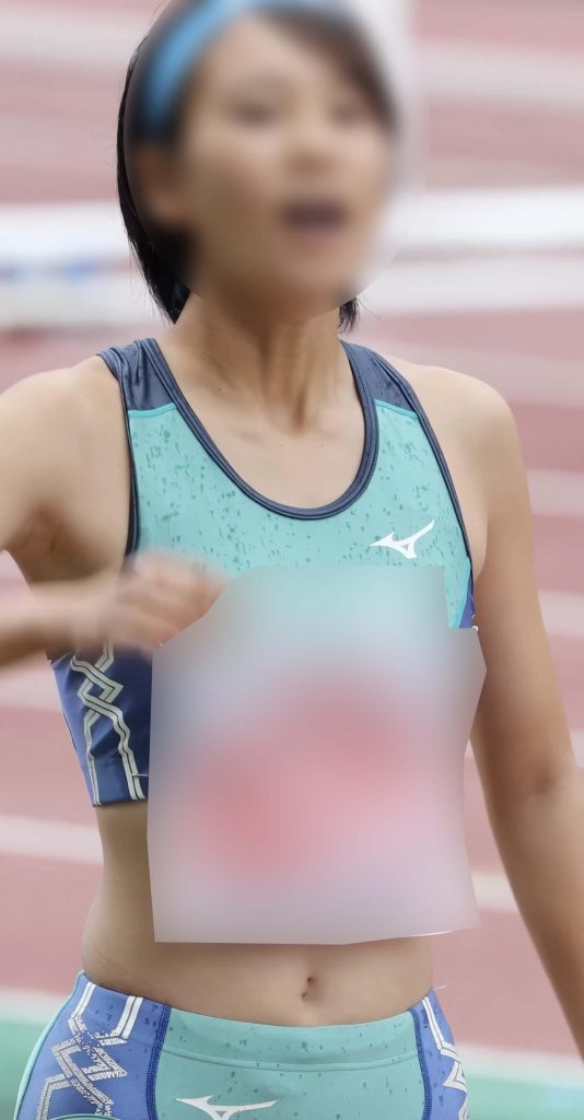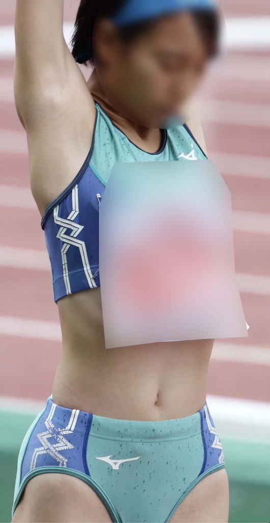 2組目を走った可愛い系の選手の鼠蹊部から豪快にはみ出してしまった所を捕えることができました!