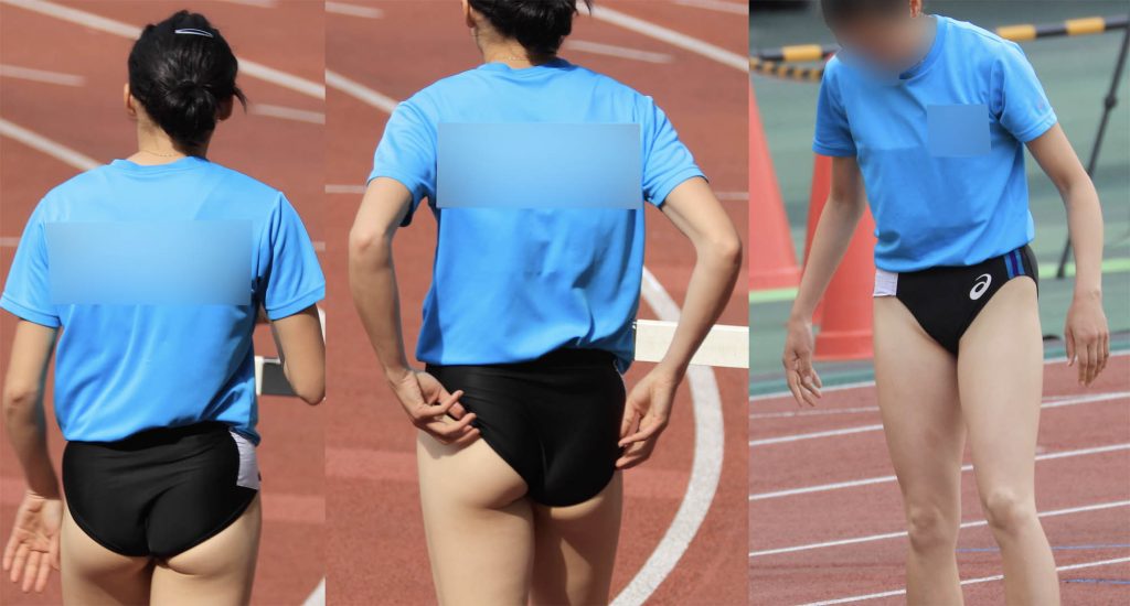 この超人気選手は3走として出場したためバトンを待つ時間も長く、幸運なことにその待機場所とカメラマンの間には障害となる物がなく、待機中にお尻の筋肉をゆらす姿や、緊張気味の表情などをじっくり撮影できています。またこのメインの3走選手を含めたチームメイトの走った後の後ろ姿もこの選手に負けないくらいの素晴らしさで、しっかりとスーパースロー化しています。