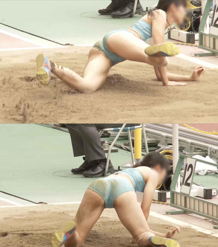 跳躍の衝撃でウェアが捲れてしまうとか、ウェアに入った砂を出すときにちょっと肌が多めに出てしまうということはこれまで度々見てきましたが、自ら尻の割れ目をここまで露出させてしまった選手は後にも先にも国内外問わずこの選手だけでした!しかも当時人気のあった水色ユニフォームのこの選手。
