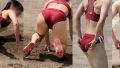 最初から3分10秒付近までは準備運動シーンは際どいエロい衣装のパンツと美尻にフォーカスして撮影。そしたらすでに汗でびっしょり。この汗の量は半端ない。拡大ズームで匂いが漂ってきそうでモッコリ間違いなしです。その後1回の跳躍です。