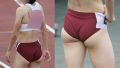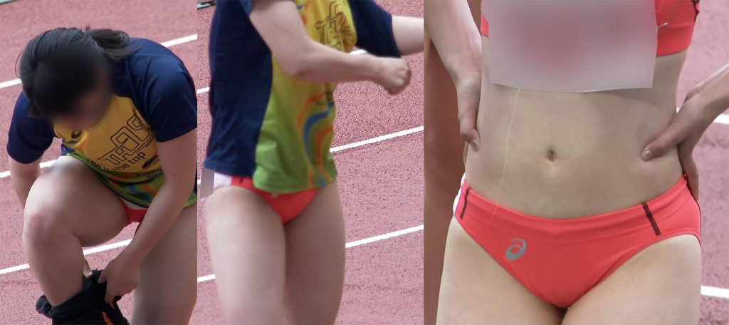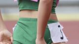 偶然にもオレンジ色系のユニフォームのチームが大集合した組となっていて、この動画では個人でも活躍しアンカーを走るオレンジx黄緑ユニの美人選手とオレンジx白の小動物系のかわいい系選手に注目して撮影しています。小動物系の選手はブルマを引き上げ過ぎたせいか微かに筋が現れています。美人選手は鍛え上げられた腹筋が美しく見ているだけで惚れ惚れとしてしまいます。