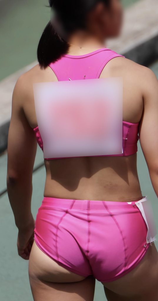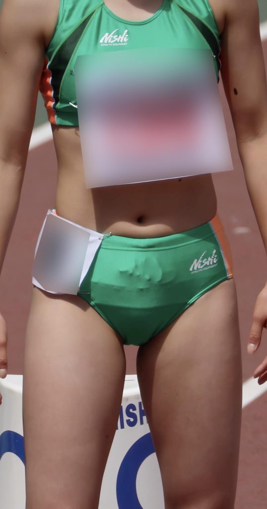 2組目を走った可愛い系の選手の鼠蹊部から豪快にはみ出してしまった所を捕えることができました!