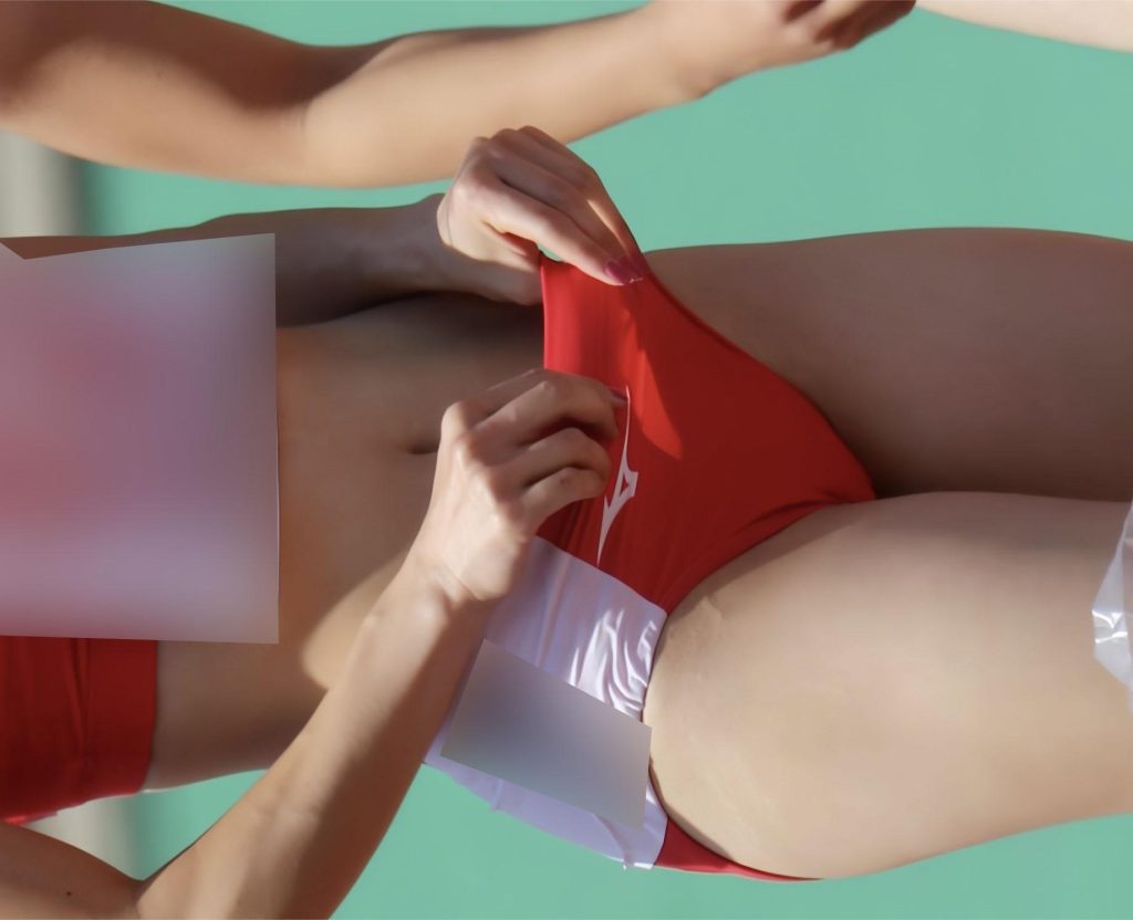 6分15秒〜ラスト:高跳びシーン。助走開始と同時に、脚の動きに合わせてハーフパンツが太ももにフィットし、鍛えられた筋肉のラインが露わに。跳躍直前、地面を強く蹴る瞬間にパンツ越しのヒップが一瞬張り詰め、視覚的なインパクトが最大に。着地の瞬間には、カメラが前方からクローズアップし、揺れる腰回りとパンツラインがはっきり映し出されます。縦動画ならではのフレーミングにより、彼女の全身が常に隅々まで映し出されるのが大きな魅力。特に頭から爪先までのバランスの良さが際立ち、視線が自然と全身をなぞるような感覚に引き込まれます。